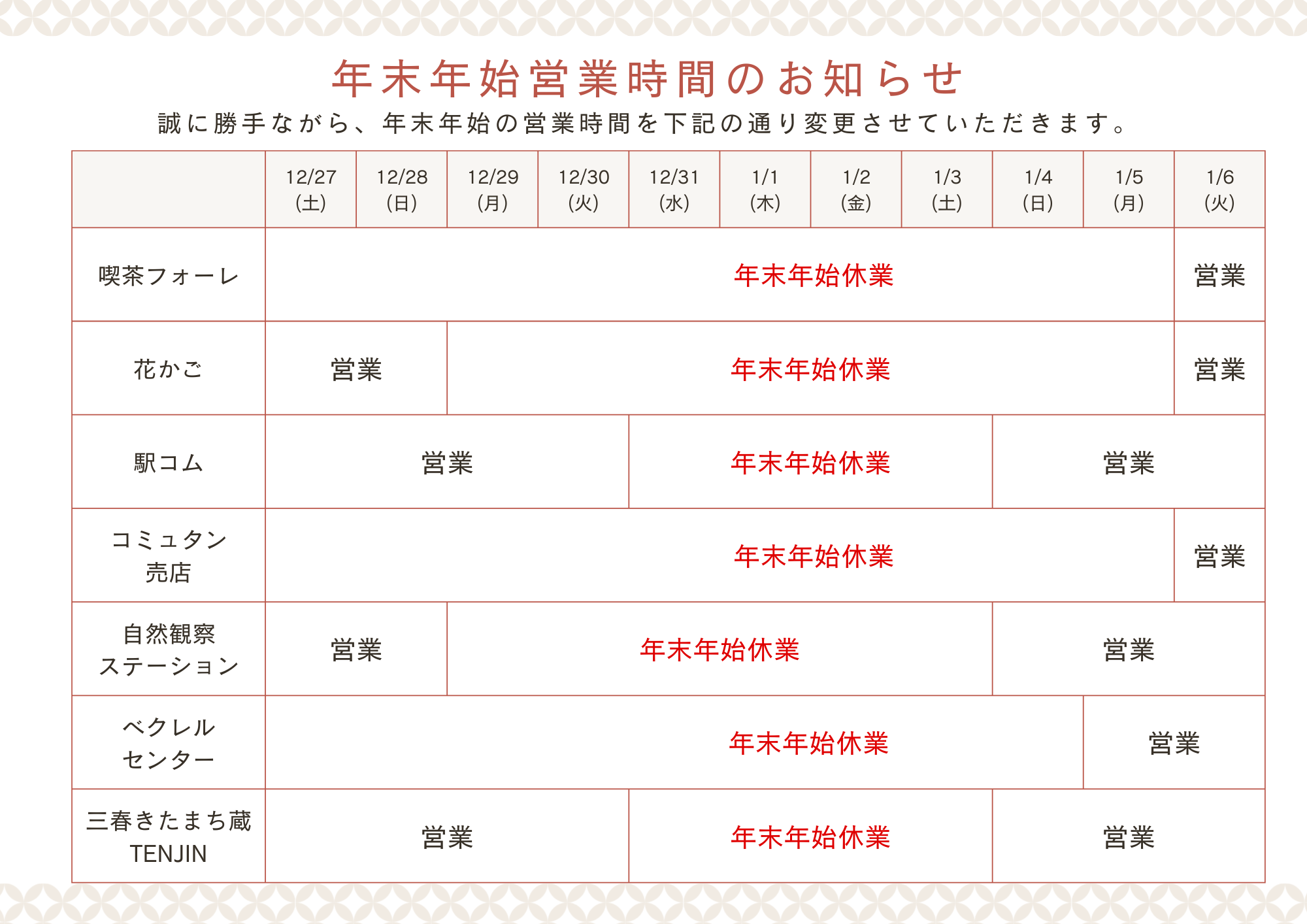 2025年➡2026年 年末年始の営業のご案内