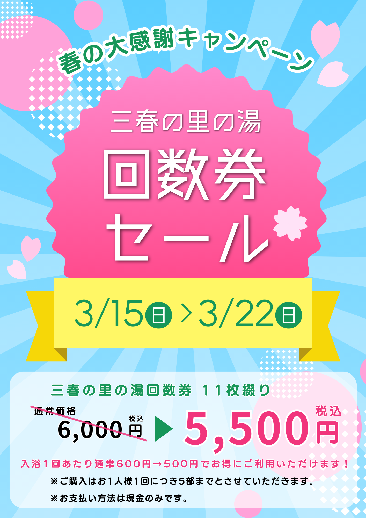 『里の湯』回数券セールのお知らせ