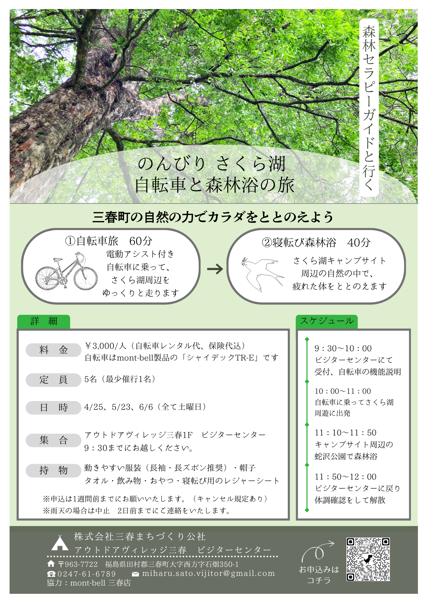 【森林セラピーガイドと歩く のんびりさくら湖 自転車と森林浴の旅】